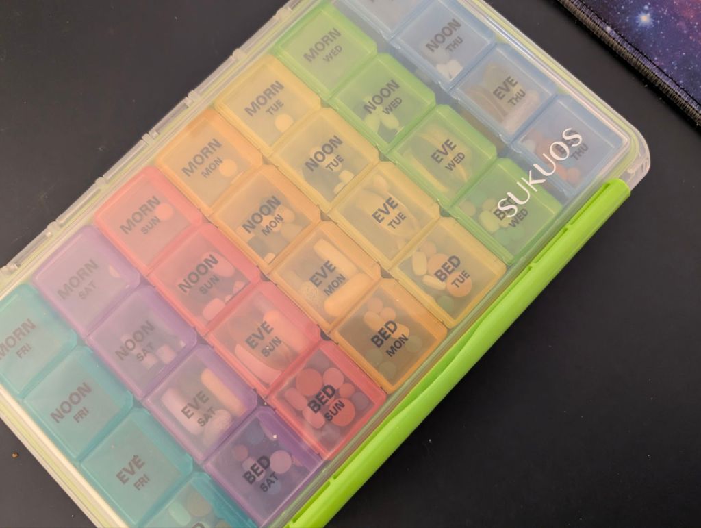 So, today I bought the Cadillac of pill keepers. It’s both hilarious and also depressing how much I needed to upgrade.