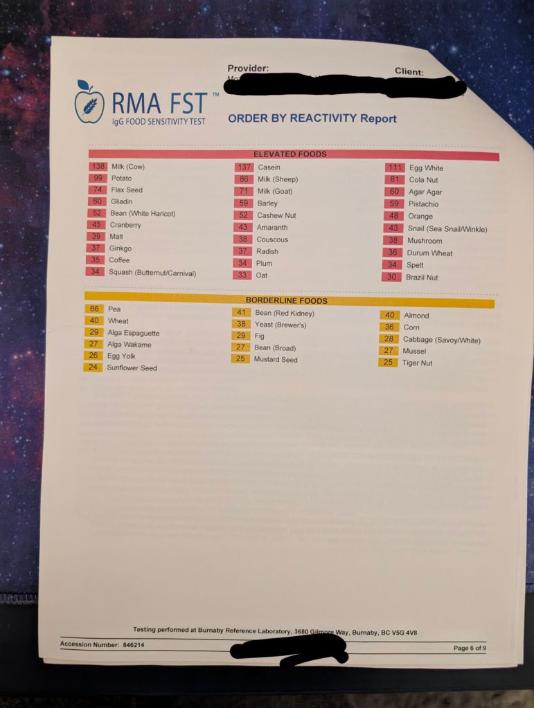 I mean, I eat and then either get itchy or sick or flush hot red on my face and chest, so I figured that would probably be the case. Well, my naturopath finally got the results back.